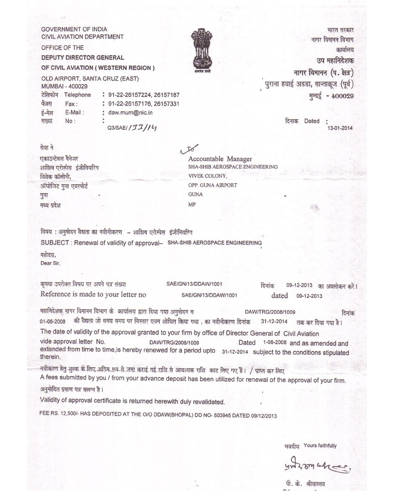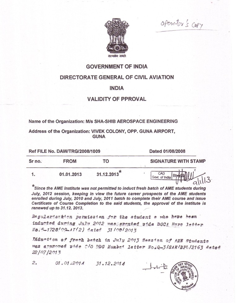 Shashib Aerospace Engineering is purely a Technical Institute which is approved by Director General of Civil Aviation, (Govt. of India) for Three Years course in Aircraft Maintenance Engineering at Guna Center.
